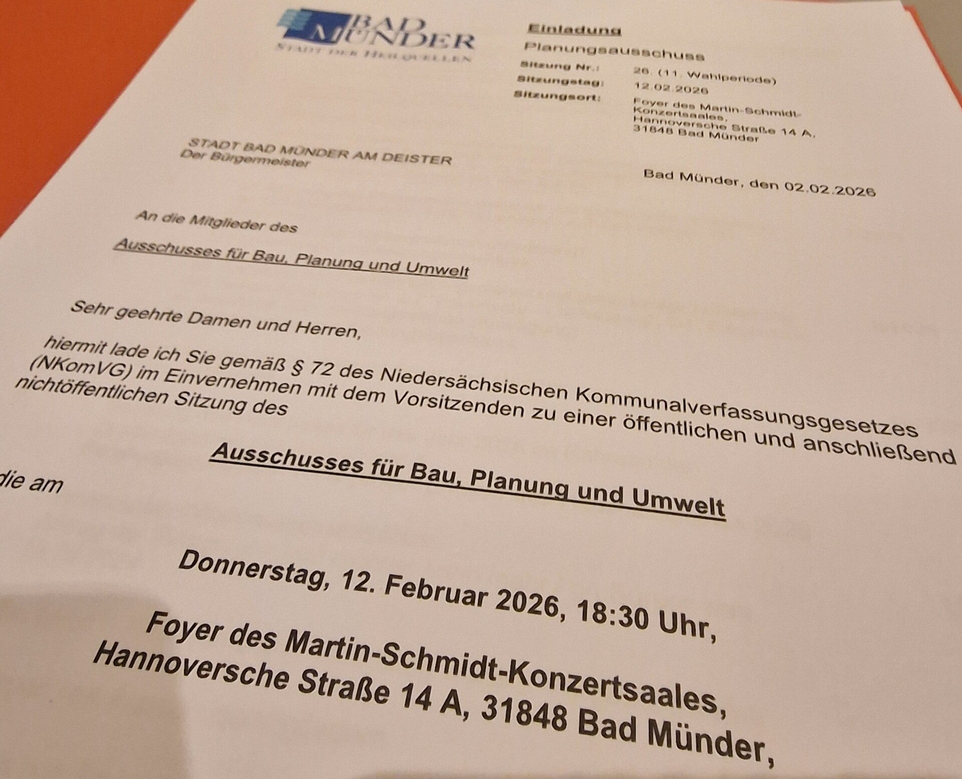 11.02.2026 | In der Februar-Sitzung des Ortsrates des Ortschaft Bad Münder haben wir im Ortsrat über die Ankaufsvereinbarung zwischen der Stadt Bad Münder und der Sparkasse beraten und den einstimmigen Beschluss gefasst die Empfehlung der Verwaltung zustimmend zur Kenntnis zu nehmen.